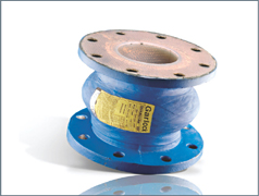 | イージーフロー®特有の幅広アーチは、流体に含まれる固形物の溜りを防ぎ、乱流を軽減します。FEPライナーは、温度と圧力上昇に伴う腐食に対して耐性があります。ガーディアン® 306イージーフロー®は、化学工業や製紙業に理想的なジョイントです。 | PTFE(テフロン)フレキシブルカップリングは、空調設備等の騒音を軽減し、管の伸縮を吸収します。優れた耐腐食性があるため化学工業においても使用されます。 | 頑丈な外見でかつフレキシブルな強化ナイロンコードは、球状にモールドされ、破断圧力に特に優れた設計になっています。流線型のスムースなアーチ形状は流体の乱流を軽減しスムースで静かな流れを確保します。 |